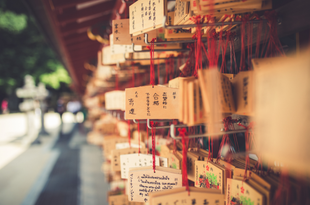 あなたの願いを奉納して、みんなの絵馬も見ていってな。